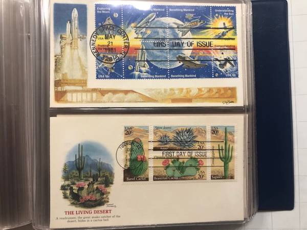 54 First Day covers in an attractive blue binder with all covers in protective sheets. Great condition.