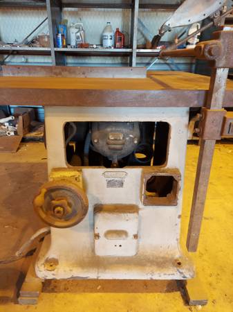 VINTAGE 3 phase wood table saw, very heavy would need a fork lift to move, not sure on year, came with a government auction lot years ago