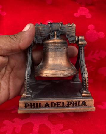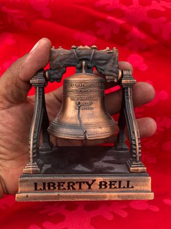 Call or text when ready to purchase TwoOneZero-300-1759 Vintage Liberty Bell on Metal Stand History On Bottom Philadelphia PA Copper Finish $20 Local Pick up or Shipping Available ($30 shipped) Call...
