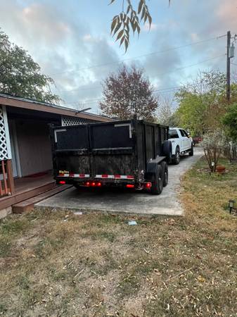 Need a dump trailer for hauling, clean-ups, or material transport? This 14' dump trailer is available for rent in San Antonio and surrounding towns Perfect for moving debris, dirt, gravel, junk, or other heavy loads.