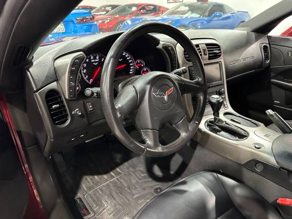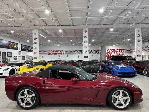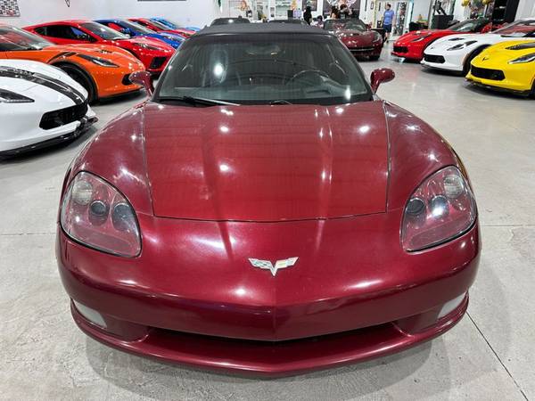 This C6 2005 Monterey Red Metallic/ Ebony Leather / Black Soft Top Comes Loaded Up with the 3LT Premium Package/1SB Preferred Equipment Group ($2,955), Performance Handling Package ($1,695), QG7 Polished Aluminum Wheels 5-Spoke ($1,265), URB Sound System with Navigation ($1,600), PREM Premium Paint Monterey Red ($750), G90 Axle, 3.15 Performance Ratio ($395), CM7 Convertible Top Power Folding ($1,995), and the USK Sound System Feature XM Satelite Radio. It is in excellent showroom condition and has been highly maintained.