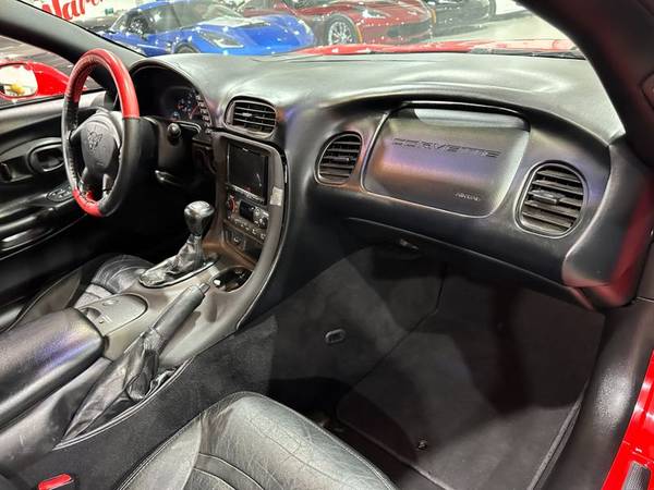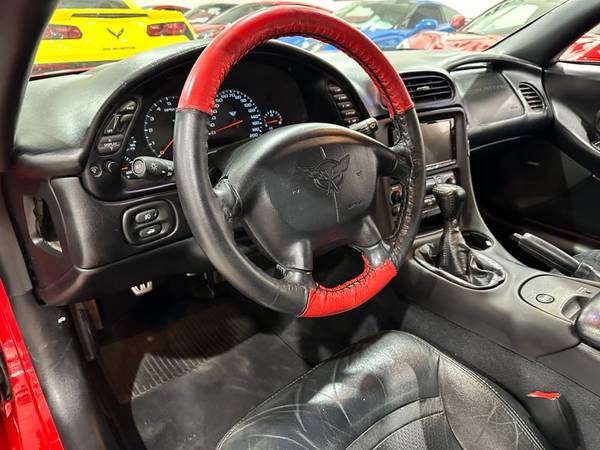 2000 Torch Red / Black Leather Chevrolet Corvette Convertible comes equipped with the MN6 6 Speed Manual Transmission W/5 TH & 6 TH Gear Od ($815), AQ9 Adjustable Sport Bucket Seats($700), CJ2 Electronic Dual Zone Air Conditioning($365), B34 Front Floor Mats ($25), T96 Fog Lamps ($69), V49 Front License Plate Frame ($15), AAB Memory PKG ($150), Z51 Performance Handling PKG ($350), U1S Remote CD Changer ($600),A G2 6 Way PWR Passenger Seat ($305), and the UV6 Heads Up Display ($375) with only 95k Miles!