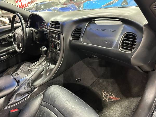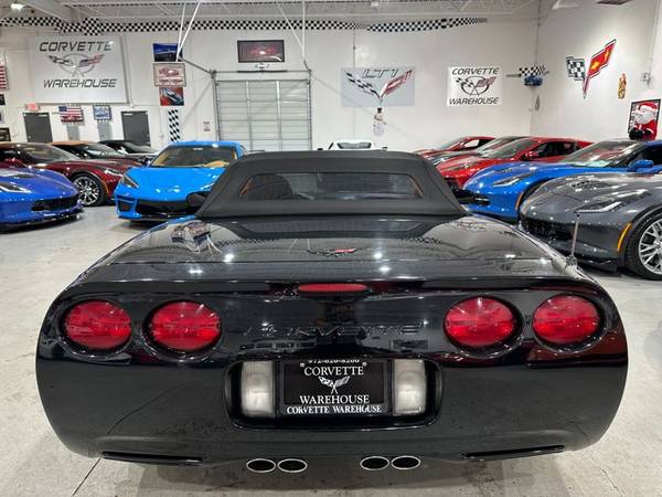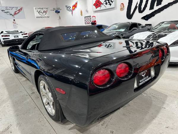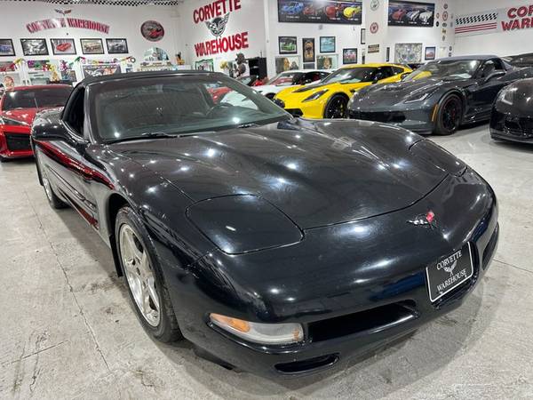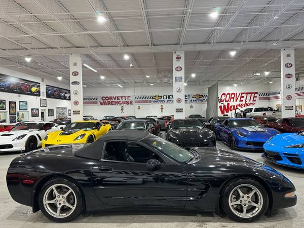 2002 Black / Black Leather / Black Soft Top Chevrolet Corvette Convertible Loaded up with the 1SC Preferred Equipment Group ($2,650), QF5 5 Spoke High Polished Aluminum Wheels ($1,295), G92 Performance Ratio Axle ($395), B84 Body Side Moldings ($150), Z51 Performance Handling PKG ($395), and the U1S Remote 12 Disc CD Changer ($600) with only 83k Miles!