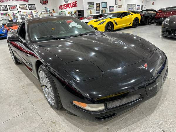 This C5 2004 Black / Black Leather Chevrolet Corvette Z06 Hardtop comes loaded with the AAB Memory Package ($175), DD0 Mirrors, Inside Rearview and Driver Outside Rearview Electrochromic (Light Sensitive Auto Dimming ($160), B84 Moldings, Body Color Side Mouldings ($150), Red Calipers, and the Z06 Chrome Wheels. This Z06 is in excellent showroom condition and has been highly maintained!