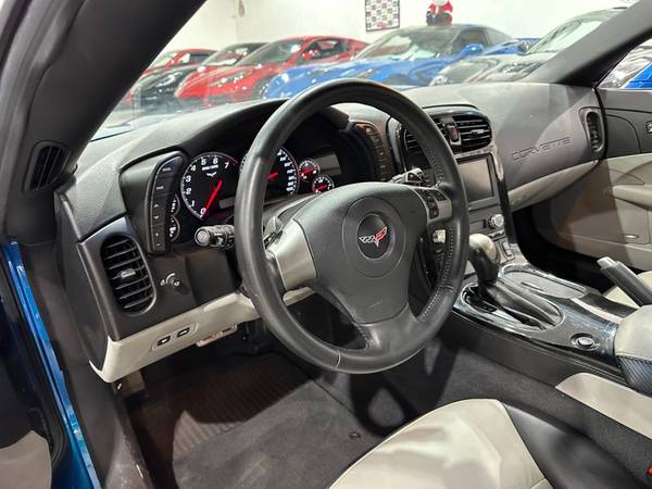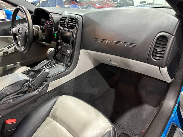 2008 Jetstream Blue Metallic Tintcoat / Two-Tone Titanium Gray-Black Leather Chevrolet Corvette Coupe Loaded Up with the 3LT Preferred Equipment Group ($4,505), Z51 Performance Package ($1,695), MX0 Automatic Transmission 6-Speed Paddle Shift with Performance Modes ($1,250), GU2 Limited Slip Performance Rear Axle, 2.73 Ratio ($395), 85U GM Premium Paint Jetstream Blue Metallic Tintcoat ($750), 846 Two-Tone Leather Titanium Gray ($695), 3U3 Audio System with Navigation, Am/FM Stereo with CD Player & MP3 Playback and DVD Based Touch Screen Navigation ($1,750), R8C Corvette Museum Delivery ($490), NPP Dual-Mode Exhaust High Performance ($1,195), Lloyd's Center Console, Chrome Door Handles, and the Z06 Chromes Wheels with Only 33k Miles!