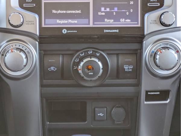 Apple CarPlay/Android Auto smart device mirroring., Toyota Safety Sense P (TSS-P) forward collision mitigation., Pre-Collision System with Pedestrian Detection., Dynamic Radar Cruise Control (DRCC)., Cruise control with steering wheel mounted controls., Rear Cross-Traffic Alert (RCTA) collision warning., fore/aft control and height adjustable control., Smart Key with hands-free access and push button start., Bluetooth wireless audio streaming., Automatic High Beams (AHB) auto high-beam headlights., Bluetooth handsfree wireless device connectivity., Electronic stability control system., Manual rear child safety door locks., Heated driver and passenger side door mirrors., Manual telescopic steering wheel., 17 x 7-inch front and rear silver aluminum wheels., P265/70SR17 AS BSW front and rear tires., Seat mounted side impact driver airbag., second and third-row overhead airbags., Seat mounted side impact front passenger airbag., Driver and passenger side knee airbag.,