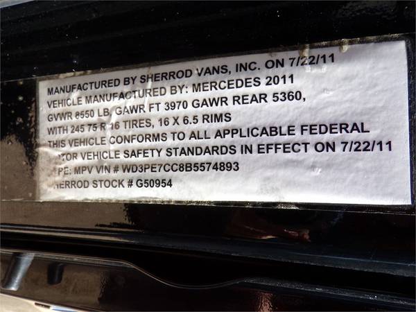 You are looking at a nicely equipped, low-mileage, very clean, fully inspected and serviced 2011 Mercedes-Benz Sprinter 2500 van with a BraunAbility UVL power lift. THIS VAN HAS ONLY 68,435 MILES ON IT. It has a clean title and accident-free Carfax. Please just ask and I will be happy to send you a free copy of the Carfax. You can also see the Carfax anytime, by clicking on the CARFAX link on our website (www.ntsmobilityvans.com). THIS IS NOT YOUR AVERAGE "IT'S PERFECT" CRAIGSLIST VAN. It has actually been inspected and serviced by two mechanics, a front-end shop and a mobility tech. The exterior is in very nice and in well above average shape. The van is very straight with no damage. You will have to hunt to even find a small door ding anywhere on this van. The MICHELIN tires ARE BRAND NEW FROM DISCOUNT TIRE AND HAVE THEIR ROAD HAZARD WARRANTY, INCLUDED. The interior shows virtually no wear. There are no holes or tears in the seats. THIS VAN HAS NOT BEEN SMOKED IN.