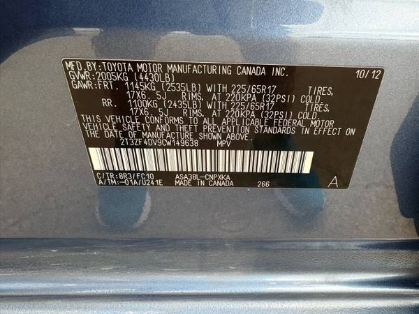 2012 Toyota RAV4 Base I4 2WD - $12,800BatchID: SFQLTVQF7O