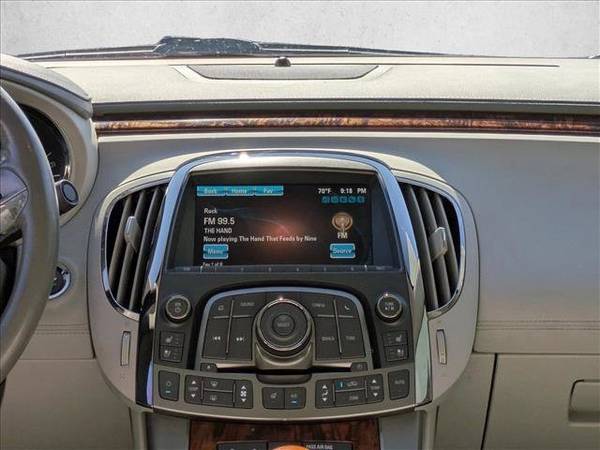 * Driver Confidence Package * Sunroof; Power; Oversized * White Diamond Tricoat * Sun/Moonroof * Leather Seats * Keyless Start * Heads-Up Display * Cooled Front Seat(S) * License Plate Bracket; Front * Chrome Wheels * Audio System; AM/FM/SiriusXM Stereo With MP3 CD Player * Axle; 2.77 Final Drive Ratio * Emissions; Federal Requirements * Engine; 3.6L Sidi Dohc V6 Vvt With E85 Capability * Head-Up Display * Headlamps; Articulating * Headlamps; High Intensity Discharge (Hid); Xenon Projector Lamps With Adaptive Forward Lighting; Flash-To-Pass Feature * Premium 2 Preferred Equipment Group * Seats; Front Bucket * Side Blind Zone Alert * Titanium; Perforated Leather Seat Trim * Transmission; 6-Speed Automatic; Electronically Controlled With OverdriveThis 2013 Buick LaCrosse Premium 2 is proudly offered by AutoNation USA San Antonio This Buick includes: ENGINE, 3.6L SIDI DOHC V6 VVT WITH E85 CAPABILITY Flex Fuel Capability V6 Cylinder Engine *Note - For third party subscriptions or services, please contact the dealer for more information.* In addition to being well-cared for, this Buick LaCrosse has very low mileage making it a rare find. You could keep looking, but why? You've found the perfect vehicle right here. More information about the 2013 Buick LaCrosse: The 2013 Buick LaCrosse has both style and attitude, with a curvy, bold look and advanced interior design. Ride, handling and overall refinement are up to world-class standards. From behind the wheel, the LaCrosse stands on the same high ground in terms of features and the driving experience, as many luxury-brand cars, yet costs thousands less. Base models start at just about $30,000, but higher end models, fully loaded with tech features can rise above the $40,000 mark. This model sets itself apart with Attractive styling, powerful V6 engine available, attractive, well-designed interior, good value, and upscale ride and refinement