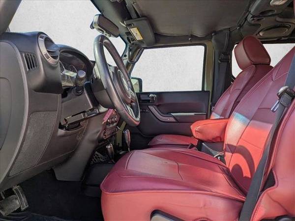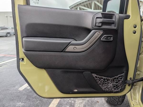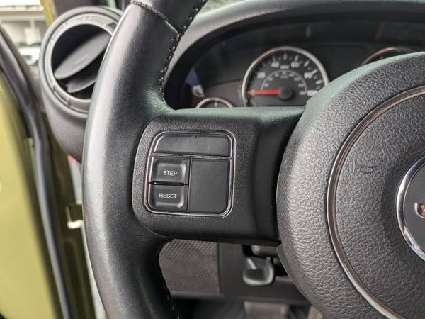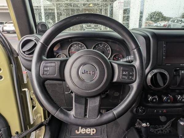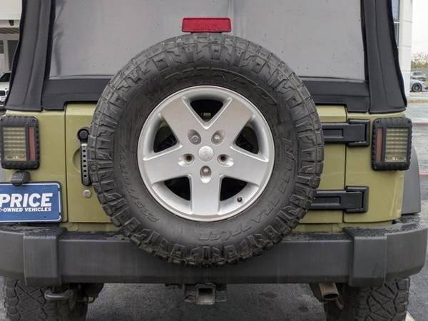 * 24S Customer Preferred Order Selection Pkg * 5-Speed Automatic Transmission * Air Conditioning * Pwr Convenience Group * Front Seat Side Air Bags * Black Premium Easy-Folding Soft Top W/Sunrider Feature * Deep-Tint Sunscreen Windows * Anti-Spin Rear Differential * Trailer Tow Group * Mopar Slush Mats * Convertible Soft Top * 17" X 7.5" Aluminum Wheels * 3.21 Axle Ratio * 3.6L Smpi 24V Vvt V6 Engine * 50-State Emissions * Black Interior; Cloth Seat Trim * Commando Green * P255/75R17 On/Off-Road Owl TiresAutoNation USA San Antonio is honored to present a wonderful example of pure vehicle design... this 2013 Jeep Wrangler Sport only has 107,813mi on it and could potentially be the vehicle of your dreams! This Jeep includes: PWR CONVENIENCE GROUP Power Mirror(s) Power Windows Auto-Dimming Rearview Mirror Heated Mirrors Security System Power Door Locks Keyless Entry BLACK PREMIUM EASY-FOLDING SOFT TOP W/SUNRIDER FEATURE Convertible Soft Top 24S CUSTOMER PREFERRED ORDER SELECTION PKG Aluminum Wheels A/C Leather Steering Wheel Tires - Rear On/Off Road Tires - Front On/Off Road 3.21 AXLE RATIO MOPAR SLUSH MATS Floor Mats ANTI-SPIN REAR DIFFERENTIAL Locking/Limited Slip Differential P255/75R17 ON/OFF-ROAD OWL TIRES Tires - Rear On/Off Road Tires - Front On/Off Road 17 X 7.5 ALUMINUM WHEELS Aluminum Wheels TRAILER TOW GROUP 3.6L SMPI 24V VVT V6 ENGINE (STD) V6 Cylinder Engine Gasoline Fuel 5-SPEED AUTOMATIC TRANSMISSION 5-Speed A/T A/T FRONT SEAT SIDE AIR BAGS Front Side Air Bag BLACK INTERIOR, CLOTH SEAT TRIM Cloth Seats AIR CONDITIONING A/C 50-STATE EMISSIONS COMMANDO GREEN DEEP-TINT SUNSCREEN WINDOWS Privacy Glass *Note - For third party subscriptions or services, please contact the dealer for more information.* Gone are the days of SUVs being the size of a tank and handling like one. This Jeep Wrangler is a perfect example of how SUVs have evolved into vehicles that are as refined as they are rugged. Want to brave the road less traveled? You'll have the 4WD capabilities to do it with this vehicle. It's not a misprint. And the odometer isn't broken. This is a very low mileage Jeep Wrangler. A rare find these days. More information about the 2013 Jeep Wrangler: With prices starting at a little over $20,000 with standard 4-wheel drive, the classic Wrangler is one of the best SUV values available. The 6-speed manual transmission helps the Wrangler achieve a not-too-shabby 15 mpg city and 19 mpg highway rating. Jeep considers the Wrangler's off-road prowess integral to the brand, and they continue to make one of the most capable 4-wheel drive vehicles out there. The Wrangler is one of the most capable off-road vehicles sold today, with its inexpensive price being the icing on the cake. Interesting features of this model are Iconic styling, impressive off-road prowess, and two and 4-door configurations available