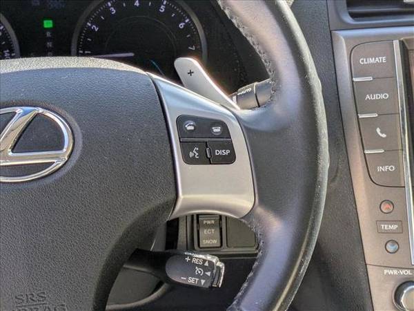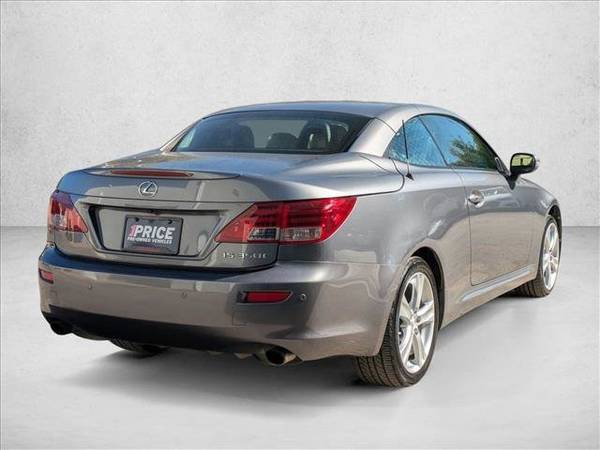 The following items have been reconditioned on this vehicle: new pair of tires! * Luxury Pkg * Navigation System * 18" Liquid Graphite 5-Spoke Alloy Wheels * Intuitive Parking Assist * Leather Seats * Navigation System * Preferred Accessory Pkg * Keyless Start * Convertible Hardtop * Light Gray; Semi-Aniline Leather Seat Trim * Nebula Gray PearlCheck out this pre-owned 2013 Lexus IS 350C we recently got in here at AutoNation USA San Antonio In just a matter of seconds, this Lexus IS 350C turns into a convertible for extra fun on a beautiful sunny day. Opulent refinements married with exceptional engineering make this the kind of car you'll want to own for a lifetime. In addition to being well-cared for, this Lexus IS 350C has very low mileage making it a rare find. More information about the 2013 Lexus IS 350C: The Lexus IS family includes something for everyone, with offerings ranging from conservative all-weather, all-wheel-drive sedans to sunny convertibles and serious track-duty sport sedans. The IS sedans ride and handle well and offer some of the tech options of larger luxury models, while the IS C models have excellent packaging with a tight-fitting, quick-folding automatic hardtop that stows away without taking up the entire trunk. While Lexus makes an ES 350 model that's roomier and more comfortable, the IS is considerably sportier in every way. Strengths of this model include sporty driving feel, high-tech features and options, Wide range of models, nicely appointed interior, and choice of rear- or all-wheel drive in sedans