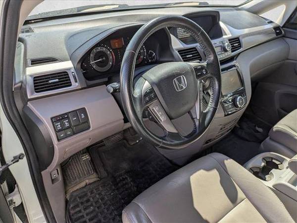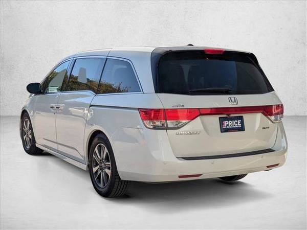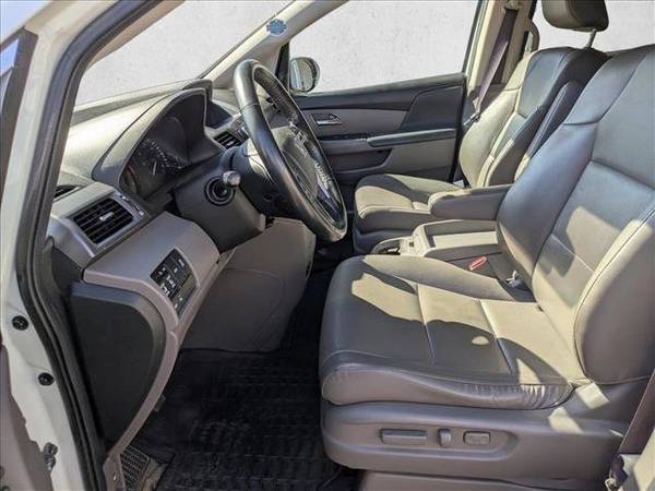 * Moonroof * Leather Seats * Navigation System * 3rd Row Seat * Keyless Start * Rear Spoiler * Beige; Leather Seat Trim * White Diamond Pearl2014HondaOdyssey - AutoNation USA San Antonio You appreciate the finer things in life, the vehicle you drive should not be the exception. Style, performance, sophistication is in a class of its own with this stunning Honda Odyssey Touring Elite. It's not a misprint. And the odometer isn't broken. This is a very low mileage Honda Odyssey. A rare find these days. This vehicle won't last long, take it home today. More information about the 2014 Honda Odyssey: The 2014 Odyssey stands out from the pack by offering an especially thoughtful, versatile interior layout and stylish design. The Odyssey's 3-mode second-row seat is also a standout in its class, able to fold, widen for passenger comfort, or become narrower for easier access to the third row. And the Odyssey remains one of the sportiest-driving minivans available -- especially with respect to handling. Feature-wise, the Odyssey is the first minivan to offer an all-digital entertainment system with a high-resolution HDMI input to keep it compatible with modern electronics. For safety, Honda also claims to offer the most LATCH child seat positions of any vehicle -- a total of five to easily allow four child seats of any design. And for the first time, the Odyssey has earned an Insurance Institute for Highway Safety Top Safety Pick+, the highest honor ever bestowed upon a minivan. This model sets itself apart with top safety pick, innovative cargo storage, responsive handling, Bold styling details, smooth, refined ride, and living-room-on-wheels comfort and versatility