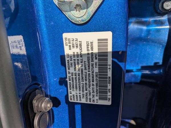 * Moonroof * Leather Seats * Lane Keeping Assist * Keyless Start * Rear Spoiler * Aegean Blue Metallic * Black; Leather Seat TrimCheck out this pre-owned 2020 Honda CR-V we recently got in. Treat yourself to an SUV that surrounds you with all the comfort and conveniences of a luxury sedan. Stylish and fuel efficient. It's the perfect vehicle for keeping your fuel costs down and your driving enjoying up. Low, low mileage coupled with an exacting maintenance program make this vehicle a rare find. There is no reason why you shouldn't buy this Honda CR-V EX-L. It is incomparable for the price and quality.