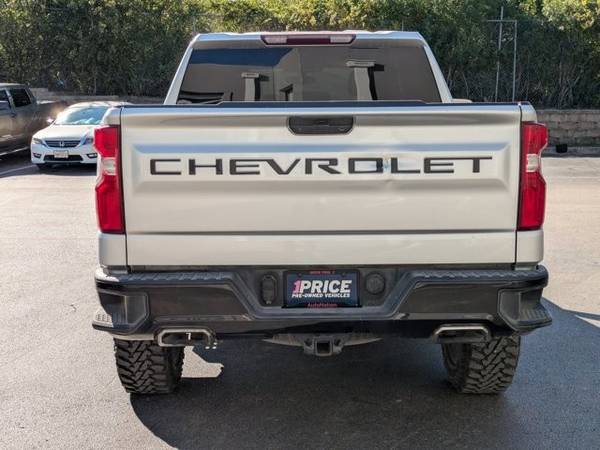* Wheels; 20" X 9" (50.8 Cm X 22.9 Cm) High Gloss Black Painted Aluminum * Keyless Start * Audio System; Chevrolet Infotainment 3 System * Emissions; Federal Requirements * Engine; 5.3L Ecotec3 V8 * Jet Black; Cloth Seat Trim * License Plate Kit; Front * Lt Trail Boss Preferred Equipment Group * Rear Axle; 3.23 Ratio * Seats; Front Bucket * Silver Ice Metallic * Tires; Lt265/60R20 Mt Blackwall Goodyear Wrangler Territory * Transmission; 10-Speed Automatic; Electronically Controlled * Not Equipped With Automatic Stop/Start; See Dealer For DetailsThank you for your interest in one of AutoNation USA San Antonio's online offerings. Please continue for more information regarding this 2021 Chevrolet Silverado 1500 LT Trail Boss with 108,872mi. You appreciate the finer things in life, the vehicle you drive should not be the exception. Style, performance, sophistication is in a class of its own with this stunning Chevrolet Silverado 1500 LT Trail Boss. This Chevrolet Silverado 1500 LT Trail Boss comes equipped with 4 wheel drive, which means no limitations as to how or where you can drive. Different terrains and varying weather conditions will have no effect as to how this vehicle performs. There is no reason why you shouldn't buy this Chevrolet Silverado 1500 LT Trail Boss. It is incomparable for the price and quality. Just what you've been looking for. With quality in mind, this vehicle is the perfect addition to take home.
