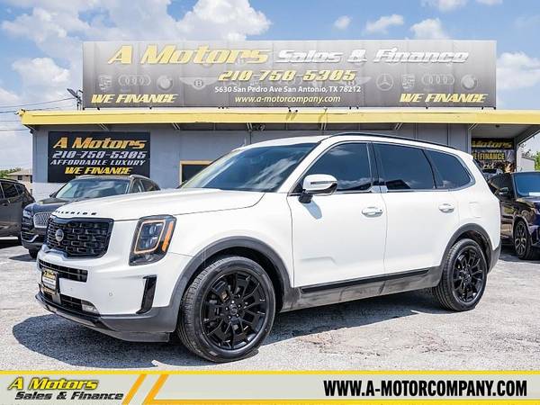 Welcome to A Motors home of the affordable luxury. Our group has three strategically located dealerships in San Antonio, which allows us to conveniently serve a wider audience throughout the region. Our team of experts takes pride in offering an impressive inventory of over 300 affordable luxury vehicles. A Motors Sales and Finance vehicles now qualify for a 5 Year Maintenance Plan (see salesperson for details). The 5 Year Maintenance Plan includes significant savings on maintenance not covered by a warranty, such as oil changes, windshield wipers, engine air filters, and cabin air filters at any Take 5 Oil Change nationwide.HIGH VALUE OPTION:COMPARE SX AWD FEATURES Added to/in place of standard EX AWD features Included- 20" Black Finished Alloy Wheels Included- LED Headlamps and Fog Lamps Included- Rear Sunroof (Fixed Glass) Included- 2nd Row Captain Chairs (2 seats) Included- Upgraded 12-Way Power Driver's Seat Included- Memory Driver's Seat & Outside Mirrors Included- Harman/Kardon Surround Sound Audio Included- Surround View and Blind-Spot View Monitor Included- Parking Distance Warning - Forward Included- HomeLinkTM Included ADDITIONAL INSTALLED EQUIPMENT: (In addition to or in place of standard features) Snow White Pearl Paint Nightfall Edition Package - Exclusive 20" Black Finished Alloy Wheels- Exclusive Front Grille in Black Finish- Exclusive Kia Logos- Black Exterior Trim Carpeted Floor Mats
