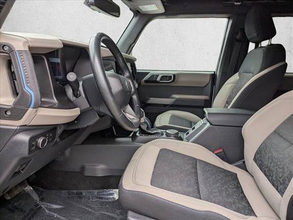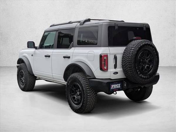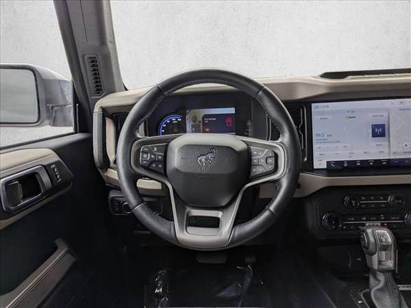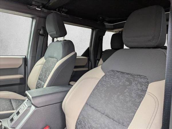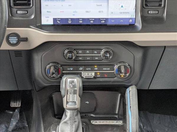* Equipment Group 354A Lux Package * Ford Performance Heavy-Duty Modular Front Bumper * Carbonized Gray Molded-In-Color Hard Top * Towing Capability * Navigation System * Black Roof Rails W/Crossbars * Upgraded Carpet Floor Mats * Cargo Area Protector * Lane Keeping Assist * Keyless Start * Convertible Hardtop * Engine: 2.7L Ecoboost V6 * Front License Plate Bracket * Medium Sandstone W/Black; Heated Cloth Bucket Seats * Oxford White * Transmission: 10-Speed AutomaticContact AutoNation USA San Antonio today for information on dozens of vehicles like this 2022 Ford Bronco Wildtrak. The Ford Bronco Wildtrak offers a fair amount of utility thanks to its advanced features and unique styling. It's also quite sporty, and injects an ample amount of handling chutzpah into the ridin'-high body of a family-friendly SUV. Is it possible to fall in love with a vehicle? It is when your vehicle is as prestige as the Ford Bronco. This vehicle comes with 4WD for better traction on unstable surfaces, like snow and dirt to give you the edge over anything you might encounter on the road. This low mileage Ford Bronco has barely been touched. It's the next best thing to buying new. Find the quickest driving route in this Ford Bronco Wildtrak using the installed navigation system. This nav system is one of the easiest to use and will help get you where you need to go quickly!
