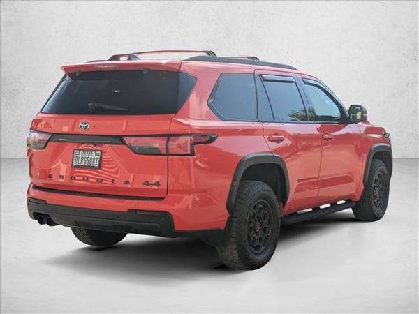 * Panoramic Roof * Power Tilt/Slide Panoramic Roof W/Power Sunshade * Navigation System * 3rd Row Seat * Special Color * Center Console Safe (Tms) * Door Edge Guard (Tms) * Emergency Assistance Kit (Tms) * Lane Keeping Assist * Keyless Start * Rear Spoiler * Cooled Front Seat(S) * 50 State Emissions * Black; Trd Pro Softex Seat Trim * Solar Octane * Trd Pro Package2023ToyotaSequoia - AutoNation USA San Antonio This Toyota Sequoia TRD Pro defines excellence in an SUV. It has the convenience of limitless boundaries paired with city sophistication. You appreciate the finer things in life, the vehicle you drive should not be the exception. Style, performance, sophistication is in a class of its own with this stunning Toyota Sequoia TRD Pro. Do you encounter heavy snow, rain or mud when driving? No problem. With this vehicle, you've got the power of 4WD to help you overcome the toughest terrain. The Sequoia TRD Pro has been lightly driven and there is little to no wear and tear on this vehicle. The care taken on this pre-owned vehicle is reflective of the 21,446mi put on this Toyota.