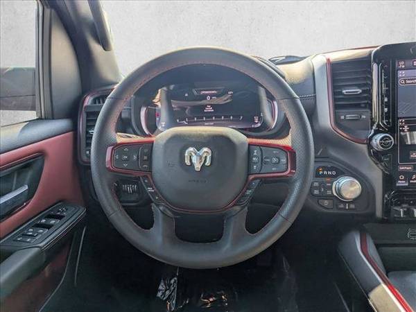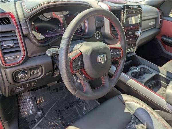 * Rebel Level 1 Equipment Group * Navigation System * Trailer Brake Control * Delmonico Red Pearlcoat * Lane Keeping Assist * Keyless Start * Diamond Black Crystal Pearlcoat * Engine: 3.0L I6 Hurricane So Twin Turbo Ess * Front License Plate Bracket * Lower Two Tone Paint * Red/Black; Cloth/Vinyl Bucket Seats * Transmission: 8-Speed Automatic (8Hp75)AutoNation USA San Antonio has a wide selection of exceptional pre-owned vehicles to choose from, including this 2025 Ram 1500. This Ram includes: ENGINE: 3.0L I6 HURRICANE SO TWIN TURBO ESS (STD) Straight 6 Cylinder Engine Gasoline Fuel Turbocharged *Note - For third party subscriptions or services, please contact the dealer for more information.* Outstanding craftsmanship and artisanal refinements abound with this Ram 1500 Rebel. Take home this Ram 1500 Rebel, and you will have the power of 4WD. It's a great feature when you need to drive over tricky terrain or through inclement weather. Based on the superb condition of this vehicle, along with the options and color, this Ram 1500 Rebel is sure to sell fast.