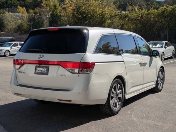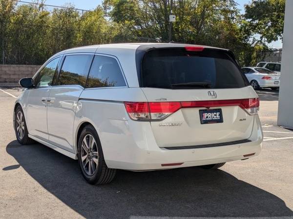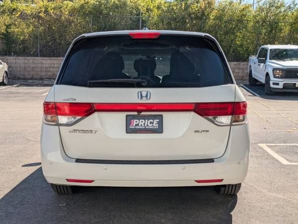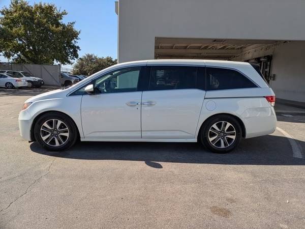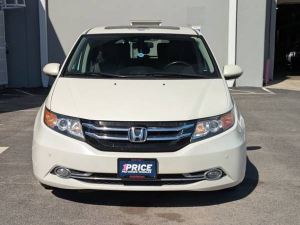 * Moonroof * Leather Seats * Navigation System * 3rd Row Seat * Keyless Start * Rear Spoiler * Beige; Leather Seat Trim * White Diamond Pearl2014HondaOdyssey - AutoNation USA San Antonio You appreciate the finer things in life, the vehicle you drive should not be the exception. Style, performance, sophistication is in a class of its own with this stunning Honda Odyssey Touring Elite. It's not a misprint. And the odometer isn't broken. This is a very low mileage Honda Odyssey. A rare find these days. This vehicle won't last long, take it home today. More information about the 2014 Honda Odyssey: The 2014 Odyssey stands out from the pack by offering an especially thoughtful, versatile interior layout and stylish design. The Odyssey's 3-mode second-row seat is also a standout in its class, able to fold, widen for passenger comfort, or become narrower for easier access to the third row. And the Odyssey remains one of the sportiest-driving minivans available -- especially with respect to handling. Feature-wise, the Odyssey is the first minivan to offer an all-digital entertainment system with a high-resolution HDMI input to keep it compatible with modern electronics. For safety, Honda also claims to offer the most LATCH child seat positions of any vehicle -- a total of five to easily allow four child seats of any design. And for the first time, the Odyssey has earned an Insurance Institute for Highway Safety Top Safety Pick+, the highest honor ever bestowed upon a minivan. This model sets itself apart with top safety pick, innovative cargo storage, responsive handling, Bold styling details, smooth, refined ride, and living-room-on-wheels comfort and versatility