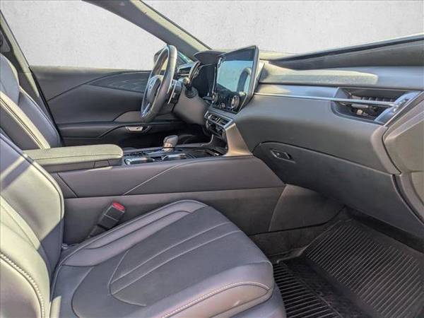 * Radio: Lexus Interface W/14" Hd Touchscreen Display * Panoramic View Monitor W/Bsm * Traffic Jam Assist * Sun/Moonroof * Premium Paint (Pj) * Navigation System * Digital Key * Advanced Park * Accessory Package (Z1) * Digital Rearview Mirror * All Weather Floor Liner * Power Rear Door W/Kick Sensor * Cold Area Package * Door Edge Film By 3M * Rear Bumper Applique * Lane Keeping Assist * Keyless Start * Rear Spoiler * Heads-Up Display * Cooled Front Seat(S) * Black W/Dark Graphite; F Sport Nuluxe Seat Trim * F Sport Handling Package * Power Tilt & Slide Moonroof * Ultra WhiteYou can find this 2023 Lexus RX RX 350 F SPORT Handling and many others like it at AutoNation USA San Antonio. This SUV gives you versatility, style and comfort all in one vehicle. Is it possible to fall in love with a vehicle? It is when your vehicle is as prestige as the Lexus RX.Enjoy the grip and control of AWD performance in this nicely equipped Lexus RX RX 350 F SPORT Handling. You can tell this 2023 Lexus RX has been pampered by the fact that it has less than 35,841mi and appears with a showroom shine.