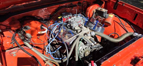 1979 Shortbed Squarebody C10 with a 1981 front clip on it. Frame in great shape. Body will need work. Glass all good. 454 big block, turbo 400 auto transmission, 12 bolt rear end. HEI distributor, Alum rad, electric fan, edelbrock intake, 650CFM 4 barrel, headers and 3" exhaust. Nice sub box behind seats.