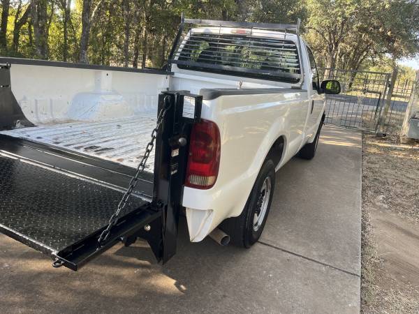 2006 FORD F250 XL REG CAB. 8-FOOT BED WITH 1300LB TOMMY LIFT. 5.4 LITER WITH AUTO TRAN S.VERY LOW MILES 74K ,WELL MAINTAINED.ICE COLD AC ,AM/FM RADIO.BRAND NEW INTERSTATE HEAVY DUTY BATTERY, RKI...