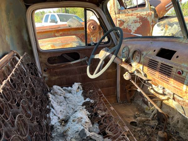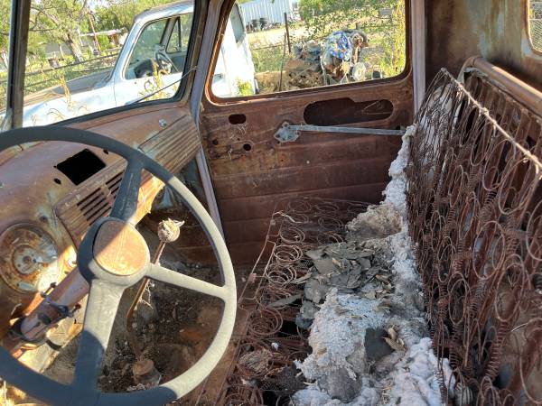 I have a 1950 Chevy 3/4 truck really good body for its age, cab corners are rusted as usual on these models, floors are in good shape, motor I’m sure is locked up as you can see from the pics. I’ll be getting some rear wheels for it to make easier to load. I also have a tractor on hand to help load. No title but I can write up a bill of sale 1500$ or best offer. Located in Grape Creek near San Angelo Tx. FCFS, NO HOLDS, no payments.