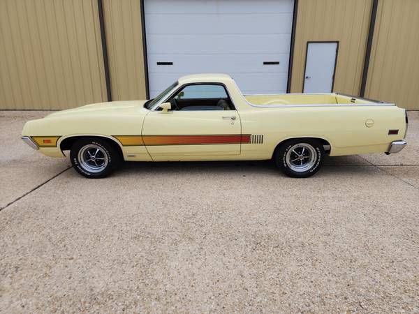 1970 Ford Ranchero GT, 351 Cleveland 4-barrel, Automatic Overdrive Trans, Dual Exhaust, rack and pinion steering. Front cross member upgrade, sway bars, PWR disc brakes, stereo, beautiful paint polished trim and chrome.