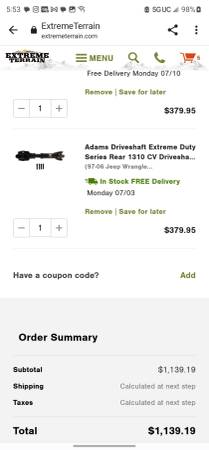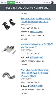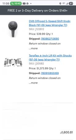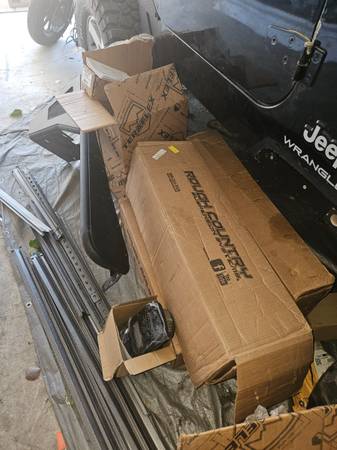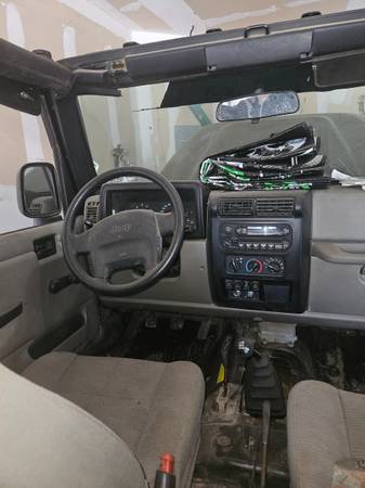2003 Jeep TJ project. It has a new aluminum radiator, electric fan, alternator, power steering pump, timing chain & fuel injectors. It has BF Goodrich Mud Terrain tires that have zero miles. It comes with a bunch of spare parts. A rear bumper with a swing out tire carrier. It fires up but needs some work on the ignition switch. The transfer has been replaced, slip yoke eliminator kit installed in transfer case. Front and rear adams heavy duty drive shafts installed. suspension needs attention. I have a rough country long arm suspension kit as well as a terra flex 4 inch lift kit all new in box that come with it when purchased. The passenger side rear quarter needs a little body work but I put the "armor guards" on it to eliminate the eyesore. Comes with brand new blacked out tail lights, headlights are used but i have the new bezels in black. Flat front fenders new (not installed) and a few other parts. All in all it's a solid rig and will make a decent project for someone, and when it's done, It'll be a fun jeep to off road in for sure. You will need to obtain a bonded title. The previous owner lost the original title. I purchased it to be used on a hunting lease so I did not obtain the bonded title. I will provide a bill of sale and full info on previous owner. I no longer have time to work on this gem and need to make room in my garage. Vehicle will have to be towed or flat bedded. Serious inquiries only.