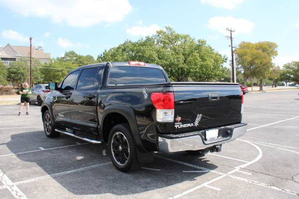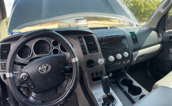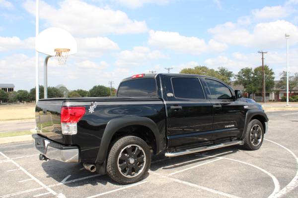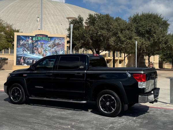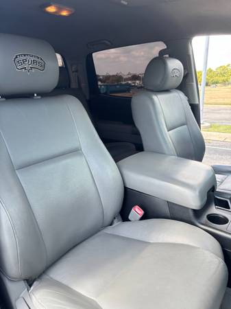 SPURS EDITION Selling my 2010 Toyota Tundra CrewMax Pickup. This reliable truck is in very good condition with 167,000 miles. Features include: Black exterior, gray leather interior V8 5.7L engine, 6-speed automatic transmission 2WD with stability and traction control Power windows, locks, and sliding rear window Bluetooth and satellite-ready stereo Bed liner and running boards Safety features: ABS, multiple airbags Comfortable for long drives with air conditioning and cruise control. Perfect for work or play. Alloy wheels add a touch of style. Chat me for more details or to arrange a viewing. We will be conducting the transaction thru Autotrader Private Seller Exchange & you can see the vehicle history report there. Thanks for your interest