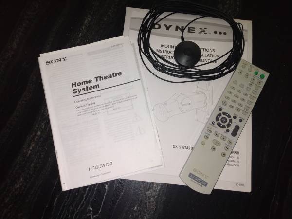 Excellent SONY sound system. 5 channel home theater. complete with manual, remote, adjustable speaker mounts, all wiring and hardware with original box. System is currently in use for demonstration...