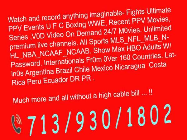 S t r e a m device offering open l i v e chnnels , Pay/per/view Movies t.v shows and sports. watch , the NFL Sunday Ticket, hockey, UFC WWE Network MLB NBA soccer internationals and much more to mention.