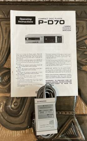 Selling a Panasonic P-D70 high-end single-disc CD player in exceptional condition. This unit is built like a tank and is known for its clean, detailed sound and solid transport. It includes the extremely rare, unused wired remote control and the original printed manual — a great find for vintage audio enthusiasts or collectors.