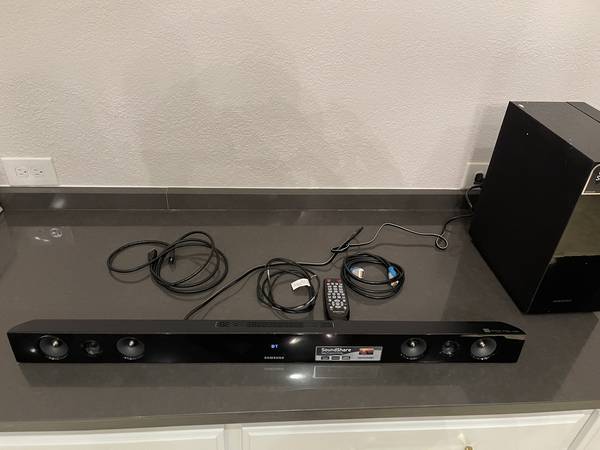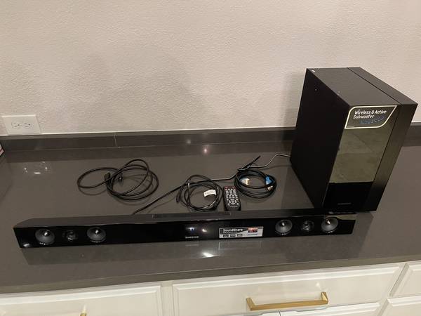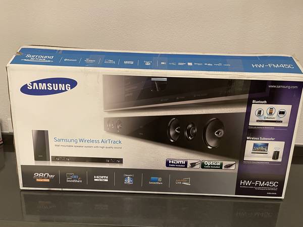 Samsung HW-FM45C wireless airtrack. Works great with nice sound ! Comes with remote, 2 HDMWI cables and optical cable