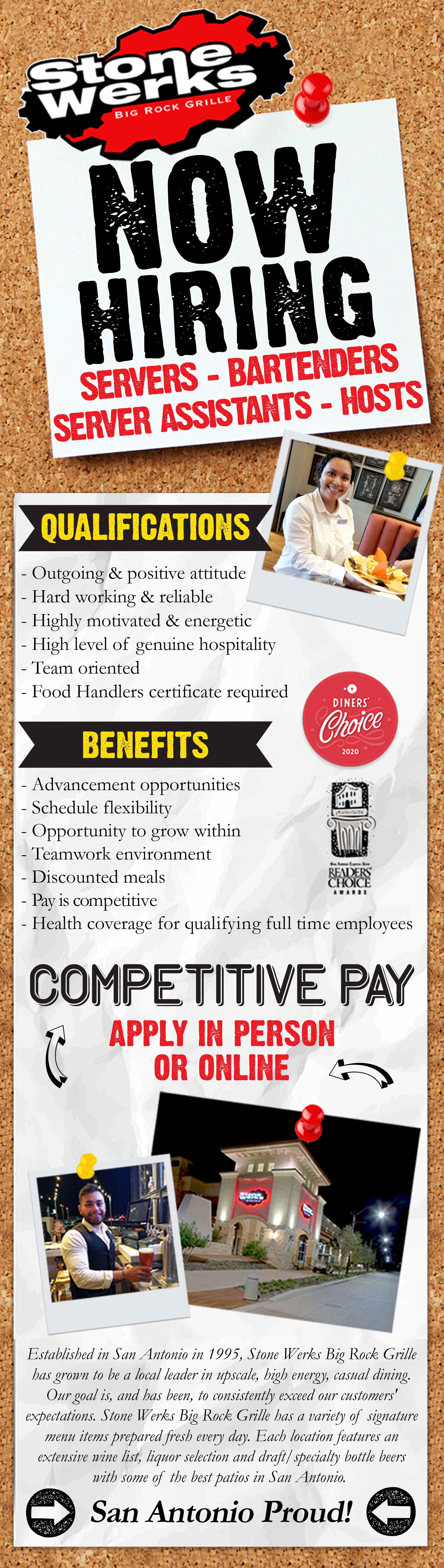 HIRING SERVERS & BARTENDERS Culebra Commons - 6626 W Loop 1604 N