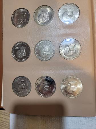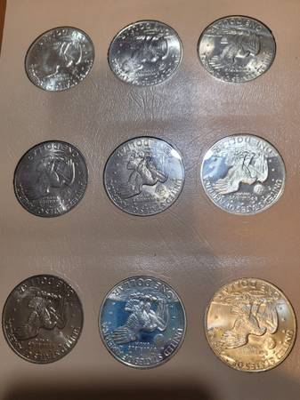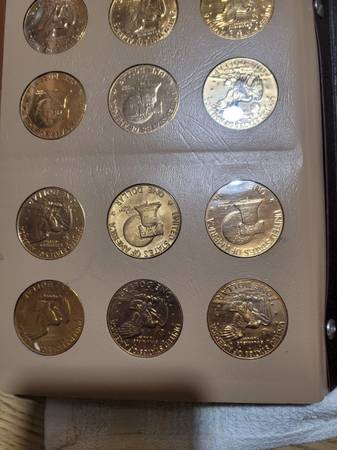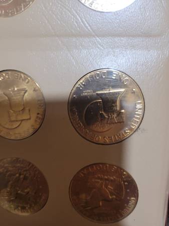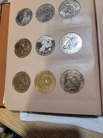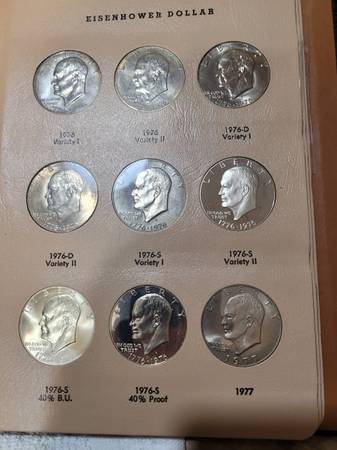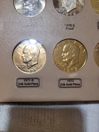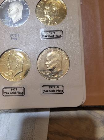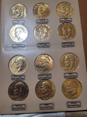 Complete set of Eisenhower Dollars, with proofs and 40% Silver coins Included in this album is a set of 24k Gold Plated Eisenhower coins. In a Dansco album Cash only.
