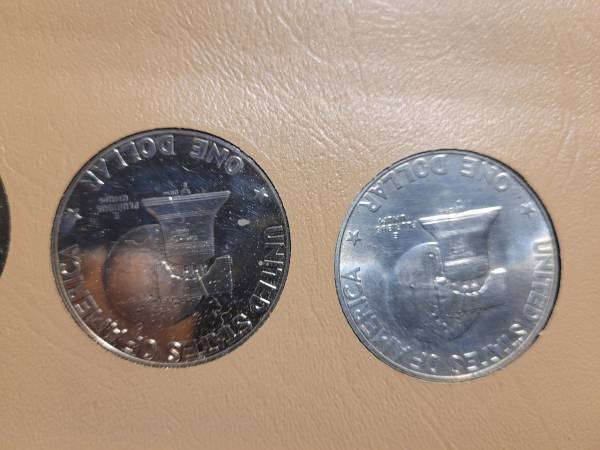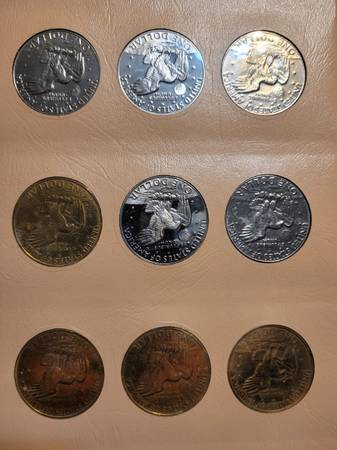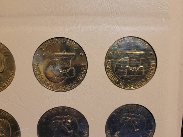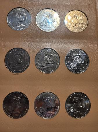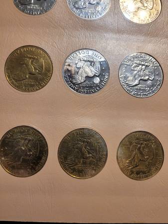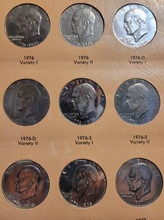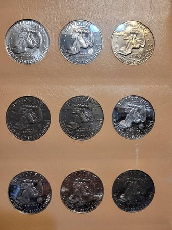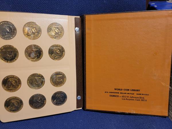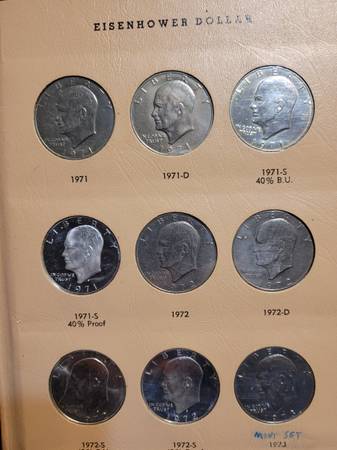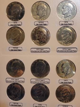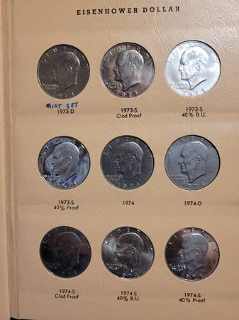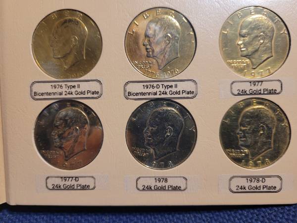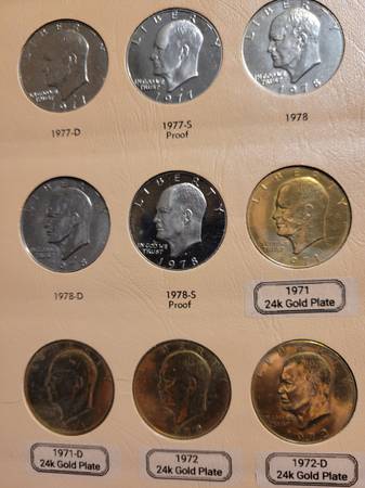 Complete set of Eisenhower Dollars, with proofs and 40% Silver coins Included in this album is a set of 24k Gold Plated Eisenhower coins. In a Dansco album Cash only.