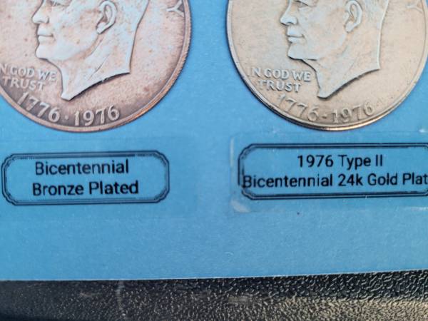 Complete set of Eisenhower & Susan B Anthony business strike clad coins including one bronze plated bicentennial coin, one 1976 type II bicentennial 24k gold plated coin and one 1973-S clad proof.
