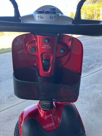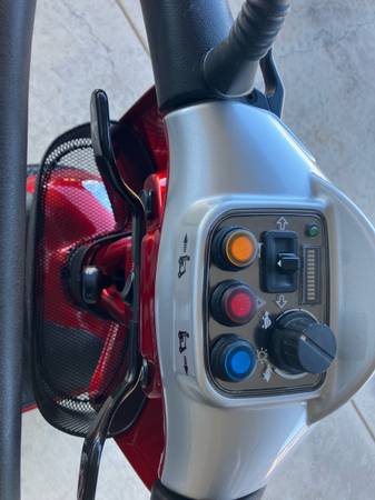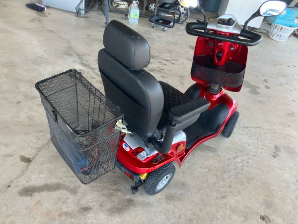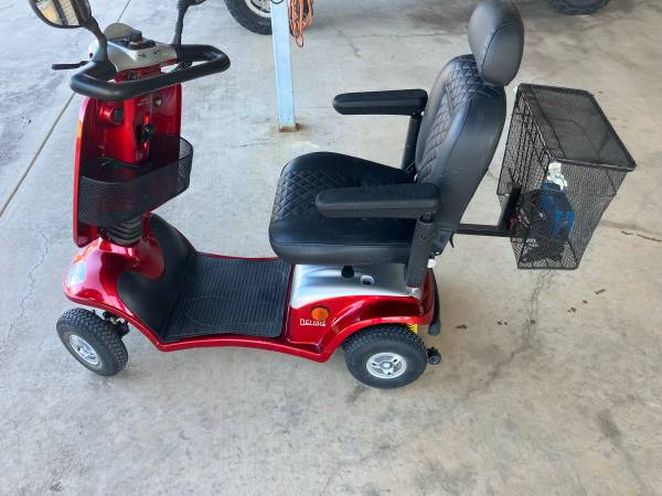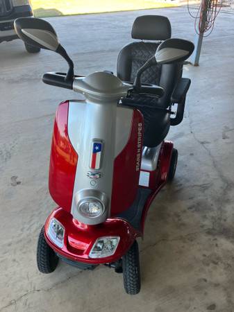 Stars N Stripes Brand Deluxe model mobility scooter. In excellent condition, everything working. Brand new batteries just installed. Unit features headlight, turn signals, hazard flashers, horn, Hi/Low speeds, speed control, front basket inside front cowling, adjustable, swiveling seat with headrest and flip up armrests, rear view mirrors, rear removable cargo basket, Charger included.