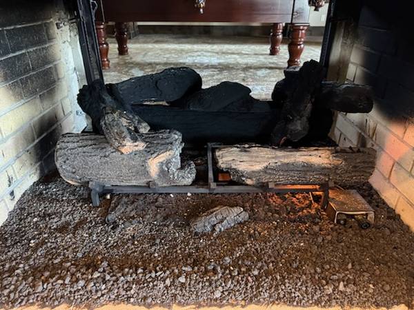 Double sided, see through gas log set in good working order. Coming out of a masonry fireplace 27 inches hieght opening and 48 inches wide opening.... Hardly used only 2yrs. old. Stored now