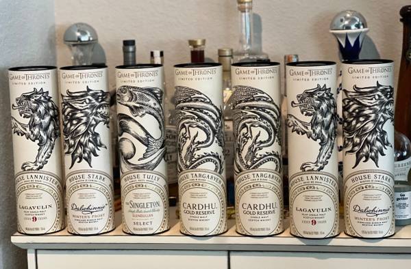 7 - Game of Thrones Scotch - House Lannister/Lagavulin 9 (x2), House Stark/Dalwhinnie Winter's Frost (x2), House Targaryen/Cardhu Gold Reserve (x2), and House Tully/Singleton Glendullan Select 750ml - Make Offer