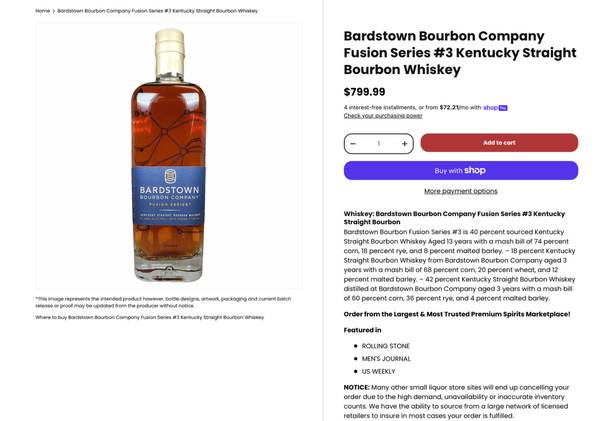 2 - Bardstown Bourbon Fusion Series #3 750ml - $100 ea