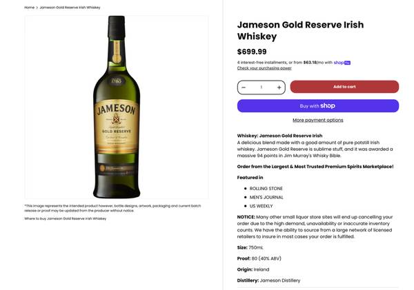 2 - Jameson Gold Reserve Irish Whiskey 750ml (European only) - Make Offer