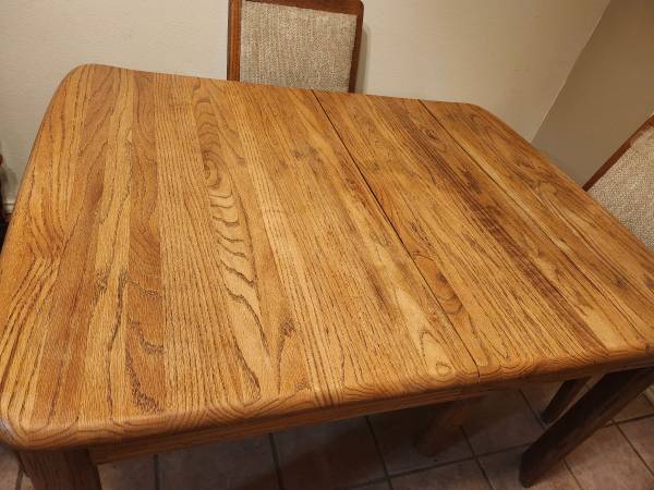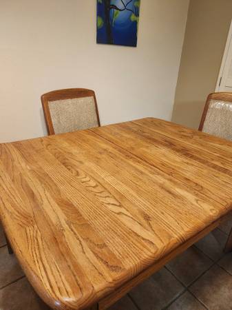 Solid wood table with two additional sleeves to make it larger. Extra extension not in the pictures. Cash only!