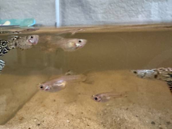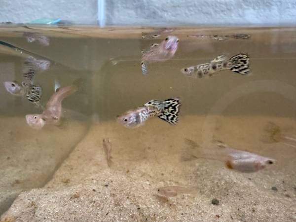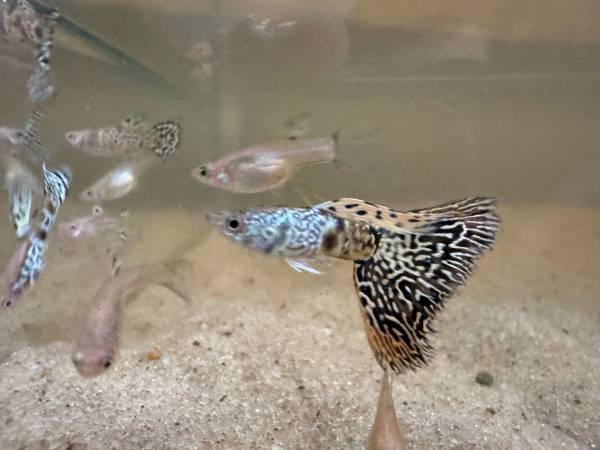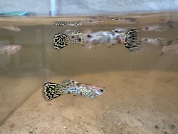 Exotic Tiger King Cobra Guppy Fish (female juveniles/young adult). Mother and Father were purchased from D & A Tropical. Note: Females are less colorful than males