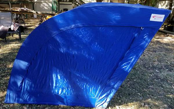 The Premier Sports Shelter is designed around the "6 Seater Bench" for the purpose of side line Soccer. But its uses are limitless, made to protect you, your team, family or anything else from the weather. Its dome shape design is a mix between a Pop-Up Canopy and a tent. The shelter covers you on four sides and still gives you sight out of the shelter and easy access into the shelter. The "Side Flaps" unzip and allow for ventilation and viewing out of the sides of the shelter. "Three Back Flaps" unzip and allow more ventilation and access into the back of the shelter where you could store sporting gear, camping supplies or any other equipment.