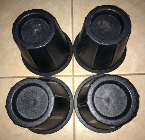 Up for sale is a used Set of 4 Leg Lift Risers for Raising Bed / Furniture / Desk / Table / Couch / Sofa. It measures approximately 4" diameter (top of base) x 6 5/8" diameter (bottom of base) x 6" H. There are scuff marks on the top parts where the bed rest on the Riser.