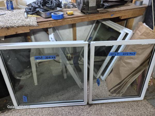 4 insulated window panels 2//28 1/2×25 1/2 with no divided lite bars /// 2//28 1/2×31 with no divided lite bars /// 1 ///28 1/2× 31 with lite bars $35 for smaller and $40 for larger ones make a deal...