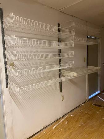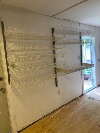 Set of wall mounted wire shelves for storage 8 shelves 14” x 48” adjustable 3 hanging brackets with screws