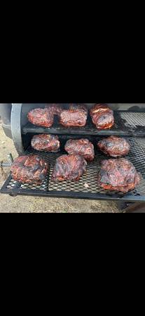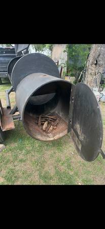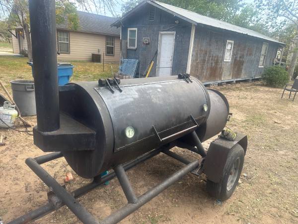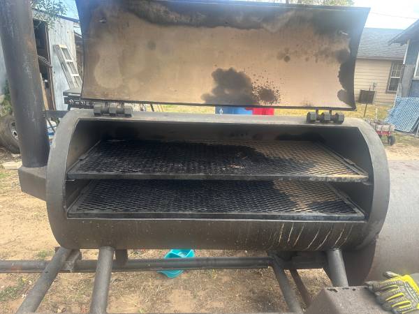 Cooking chamber 1/2 inch thick and firebox 1/2 inch thick. Has two cooking racks. Bottom rack is 53 1/2”L x 28”W and top rack is 54” L x 25” W